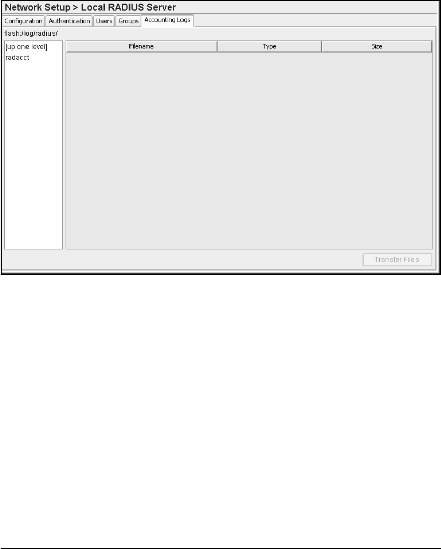 Figure 11-20.Network Setup > Local RADIUS Server > Accounting Logs Screen