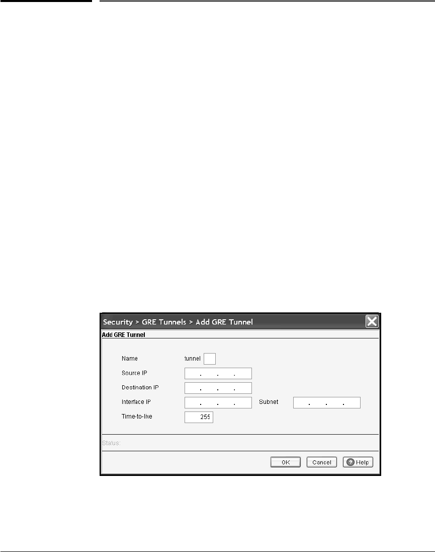 2. Click the Add button. The Add GRE Tunnel screen is displayed.