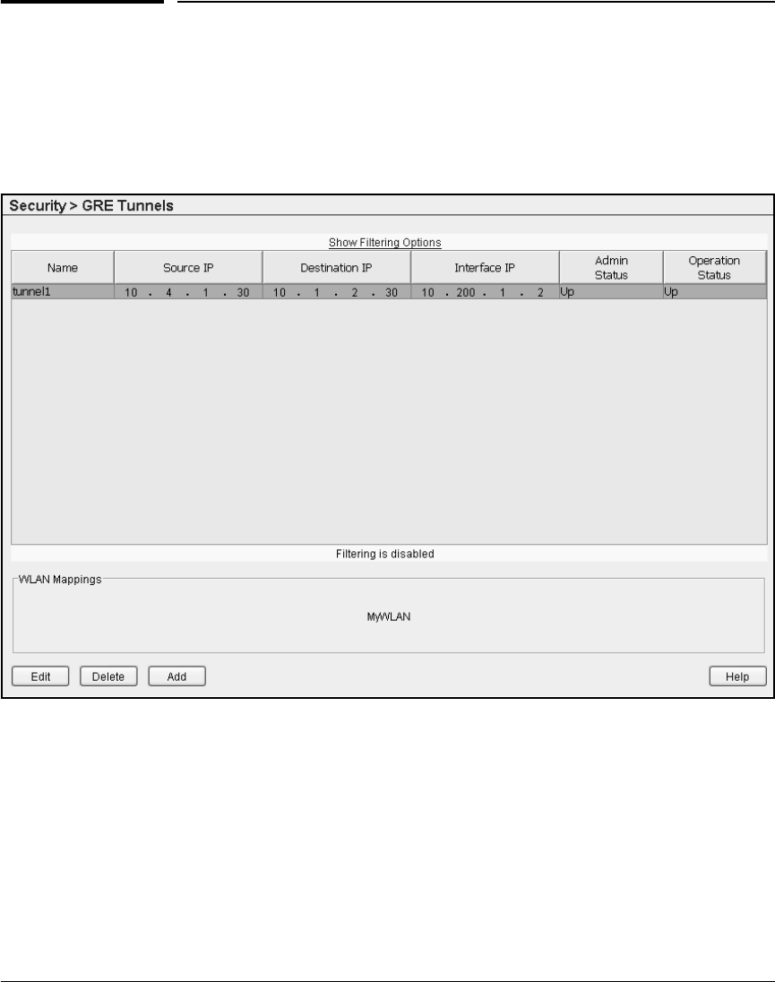 Figure 12-7. Viewing a GRE Tunnel’s WLAN Mappings