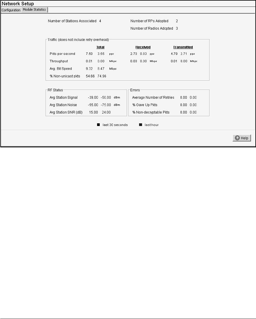 The Traffic section contains statistics similar to those discussed in “Wireless