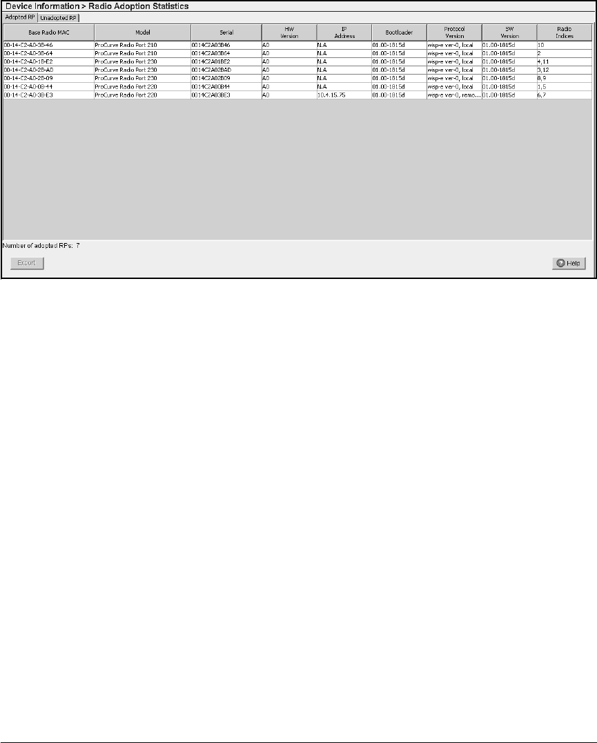 Figure 13-24.Device Information > Radio Adoption Statistics > Adopted RP Screen