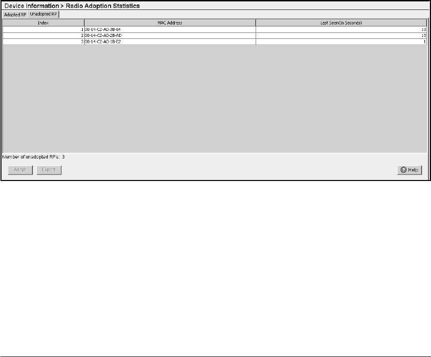 Figure 13-25.Device Information > Radio Adoption Statistics > Unadopted RP