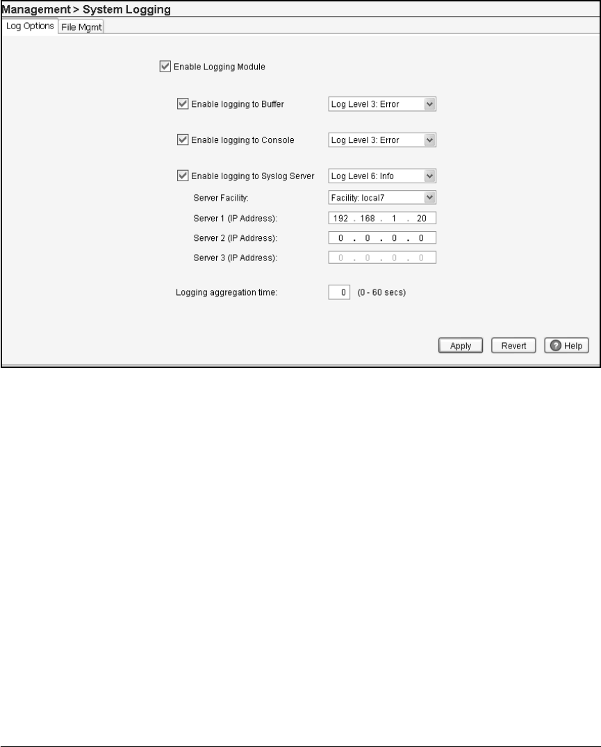 own log file, select Management > System Logging and click the File Mgmt tab.