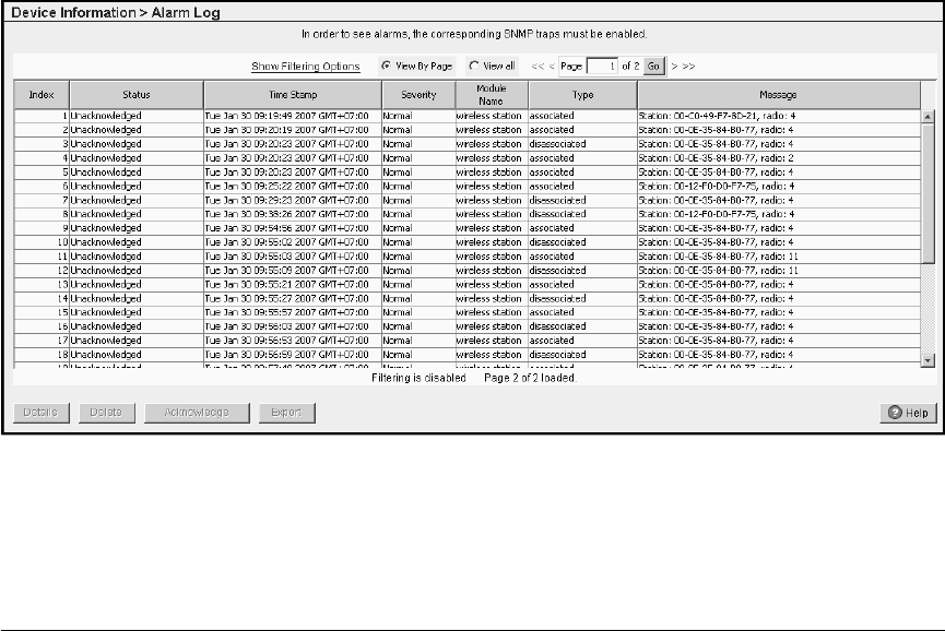 In order for the Wireless Edge Services xl Module to log an alarm, you must