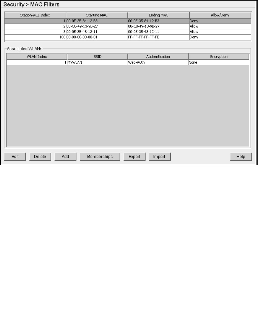 With this configuration, only the stations allowed by ACLs 2 and 3 can con-