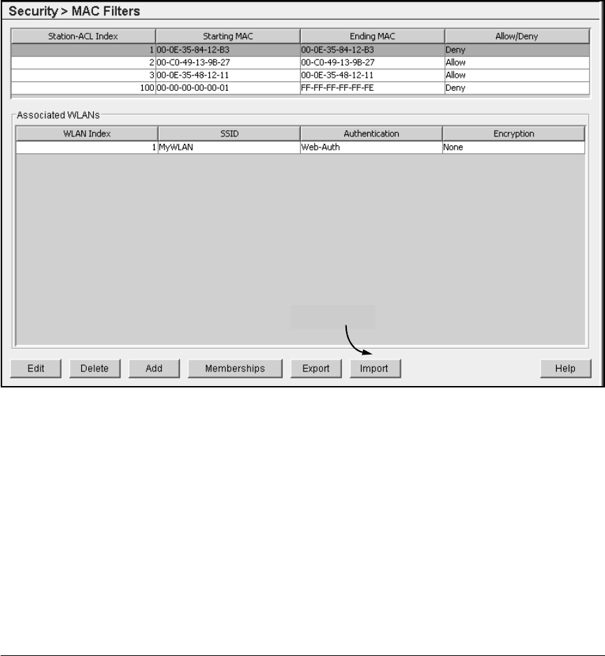To import MAC standard ACLs to your Wireless Edge Services xl Module,