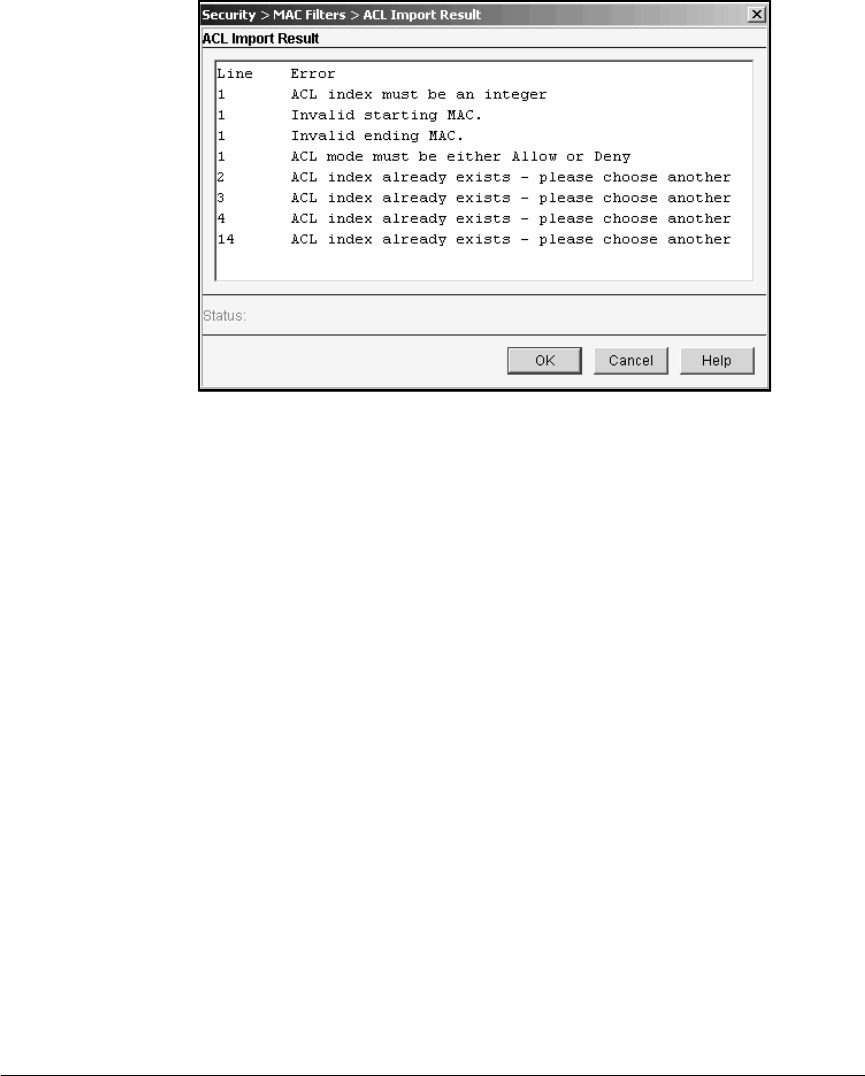 Then re-import the file, as described in “Importing MAC Standard ACLs”
