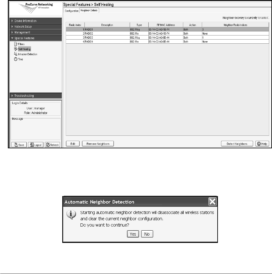 2. Click the Detect Neighbors button. The Automatic Neighbor Detection screen