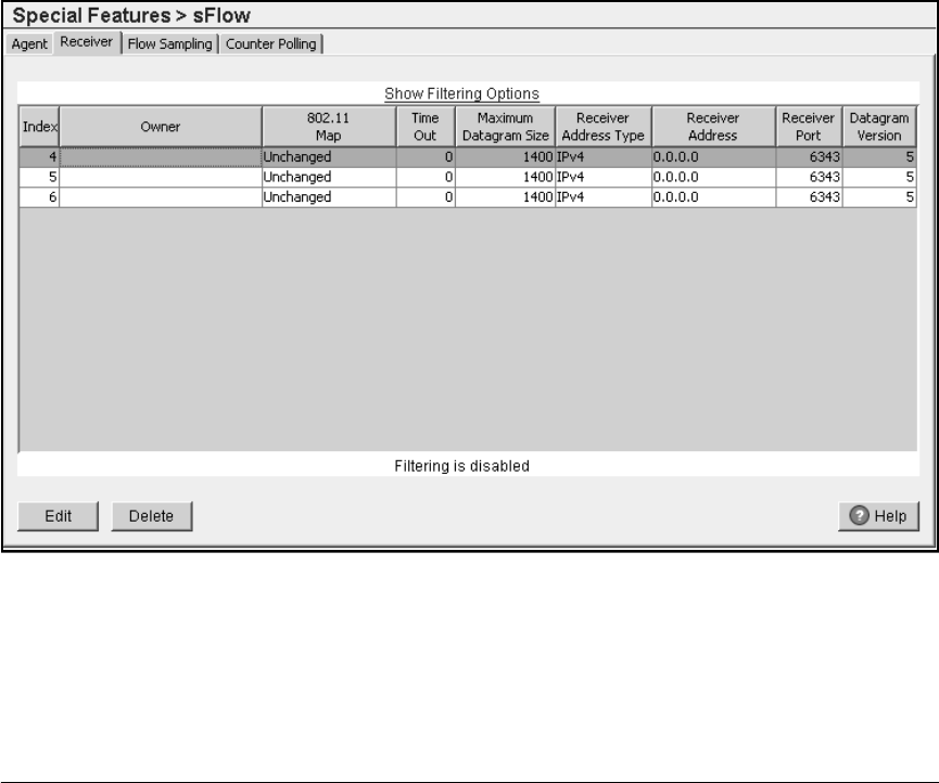 Figure 14-2. Special Features > sFlow > Receiver Screen