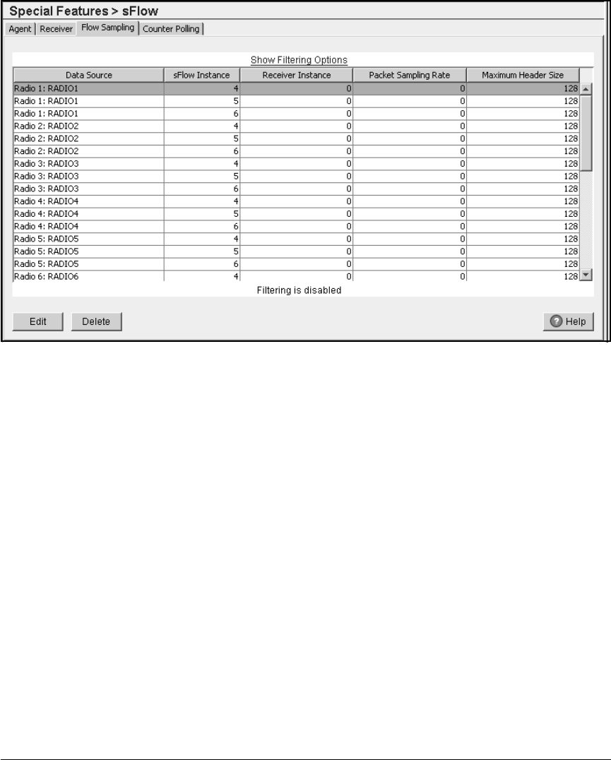 3. Click the Edit button. The Flow Sampling Configuration screen is displayed.