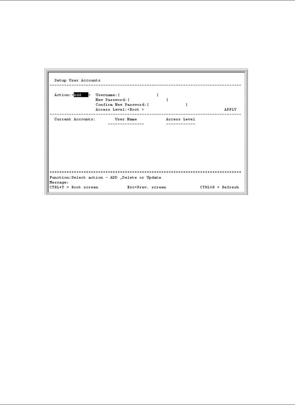 2. Press the Enter key. The Setup User Accounts screen is displayed.