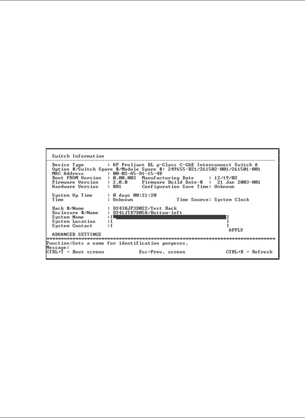 HP ProLiant BL p-Class GbE Interconnect Switch Menu-driven Interface Reference Guide 2-9