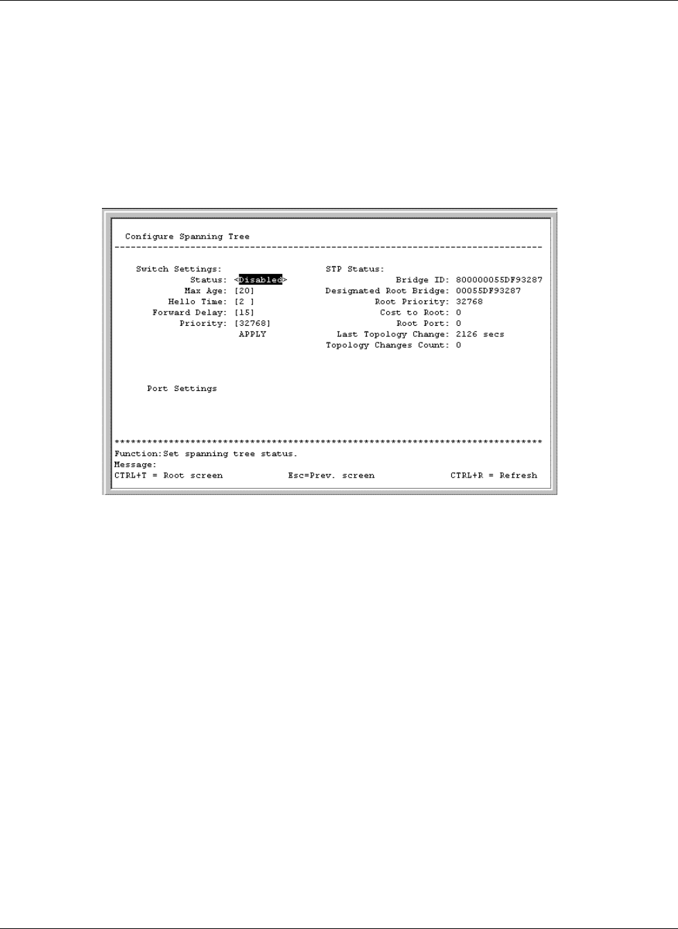 The Configure Spanning Tree screen allows you to set the global STP parameters and