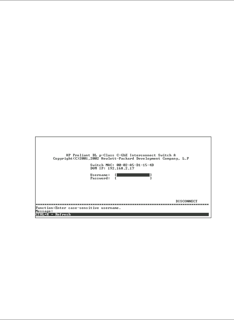 When you log on to a GbE Interconnect Switch, the following screen is displayed.