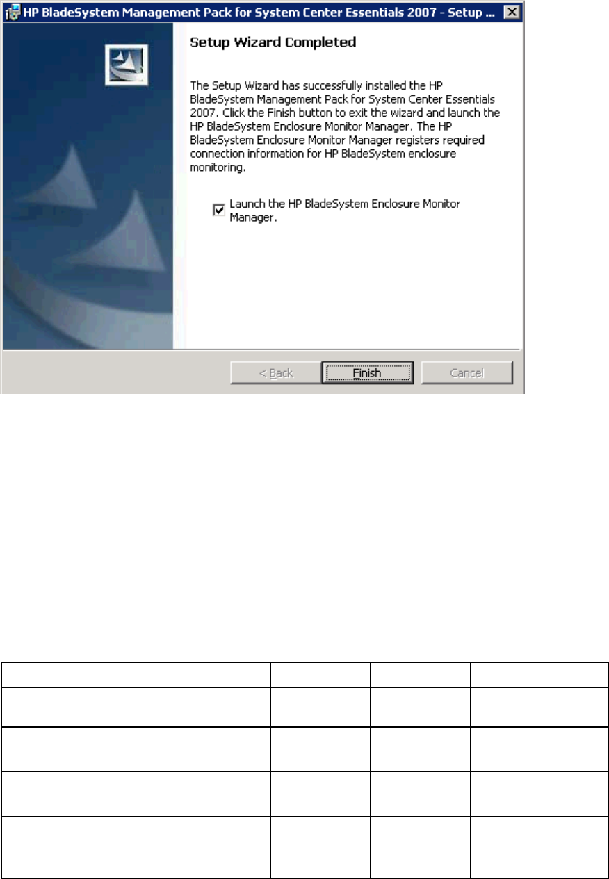 10. Select the Launch HP BladeSystem Enclosure Monitor Manager checkbox to launch HP BladeSystem