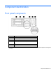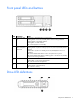 Front panel LEDs and buttons Item Description Status 1 Health status LED bar Solid Green = Normal (System is powered on.) Flashing Green = Power On/Standby Button service is being initialized. Flashing Amber = Degraded condition Flashing Red = Critical condition Off = Normal (System is in standby.) 2 Power On/Standby Solid Green = System is powered on. button and system Flashing Green = System is waiting to power on; Power On/Standby button is power LED pressed.