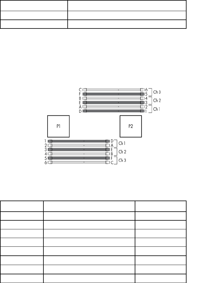 DIMM slots are numbered sequentially (1 through 6) for each processor. The supported AMP modes use the