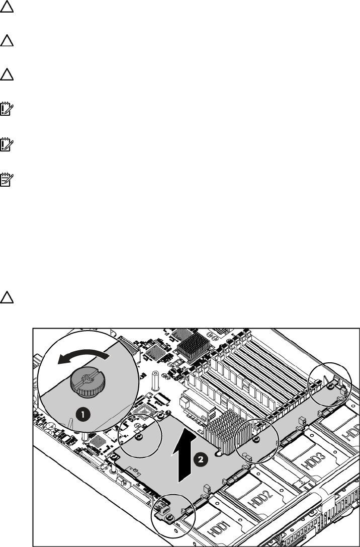 CAUTION: Remove all hard drives and hard drive blanks before removing the hard drive backplane.