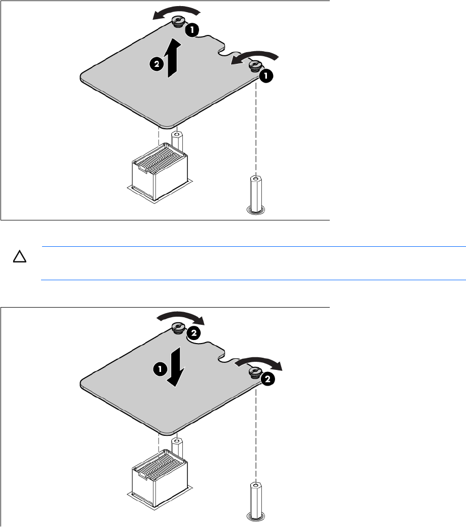 connector when installing the mezzanine card. Do not apply pressure to the edges of the card.