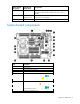 Component identification Front panel components and LEDs Item Description 1 UID LED 2 Health LED 3 Flex 1 LED 4 Flex 2 LED 5 Flex 3 LED 6 Flex 4 LED 7 Power On/Standby button and system power LED 8 Hard drive bay 1 9 Hard drive bay 2 10 Server release lever 11 Server release lever button 12 Local I/O connector Component identification 7