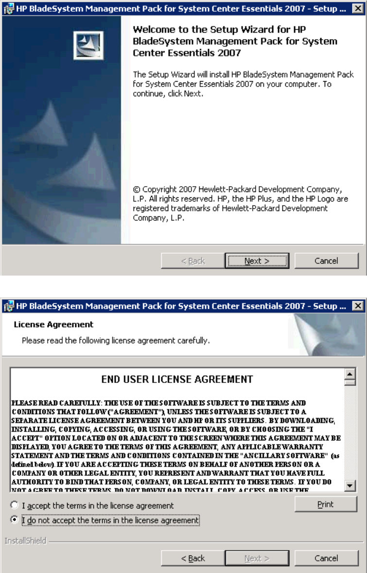HP BladeSystem Management Pack for Microsoft® System Center Essentials 2007 User Guide