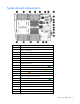 System board components Item Description 1 Processor socket 4 2 Processor 4 DIMM slots 3 Processor socket 1 (populated) 4 Processor 1 DIMM slots 5 Smart Array connector 6 TPM connector 7 Micro-SD card connector 8 Internal USB connector 9 Mezzanine connector 2 (Type I or Type II mezzanine) 10 Enclosure connectors (2) 11 Mezzanine connector 1 (Type I mezzanine only) 12 Embedded NIC 13 Cache module capacitor holder 14 Hard drive backplane power connector 15 Mezzanine connector 3