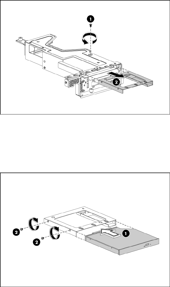 4. Secure the optical drive to the carrier with the provided mounting screws. (step 2 in figure 27)