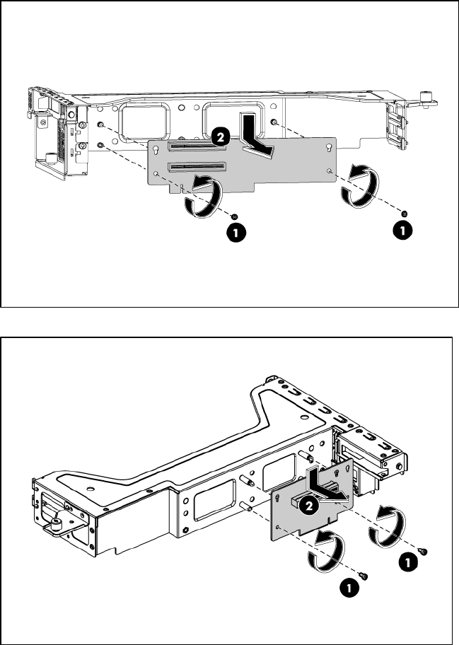 2. Install and tighten the two screws that secure the riser card to the PCI cage.