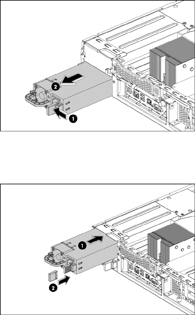 1. Align the power supply cage connector with the open slot of power supply, and slide the power