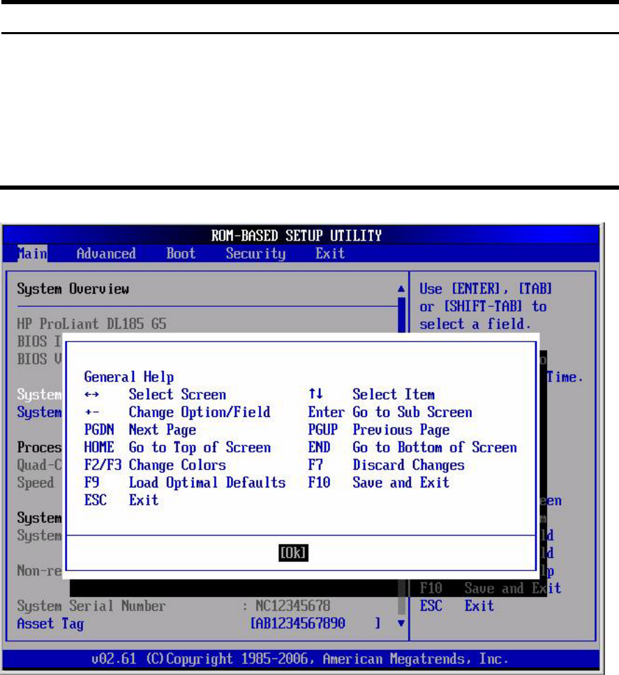 Figure 7 Setup Utility General Help screen