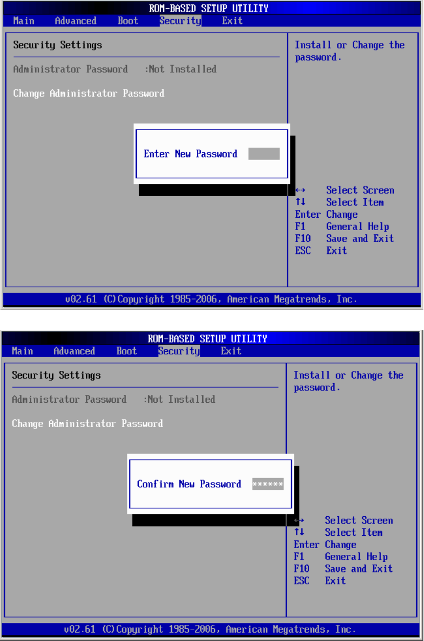 Figure 8 Security menu of the BIOS Setup Utility 2