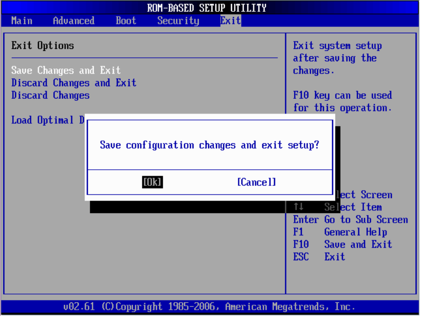 Use this menu to save changes or discard changes. When you save and exit, the server reboots.