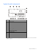 Rear panel LEDs and buttons Item Description Status 1 NIC link LED Solid green = Link exists Off = No link exists 2 NIC status LED Solid green = Link to network Flashing green (1 Hz/cycle per sec) = Network active Off = No network activity 3 Power supply LED Solid green = Normal Off = One or more of the following conditions exists: • • • • 4 UID button/LED Power Power Power Power is unavailable supply failed supply is in standby mode supply error Solid blue = Activated Flashing blue (1 Hz/c