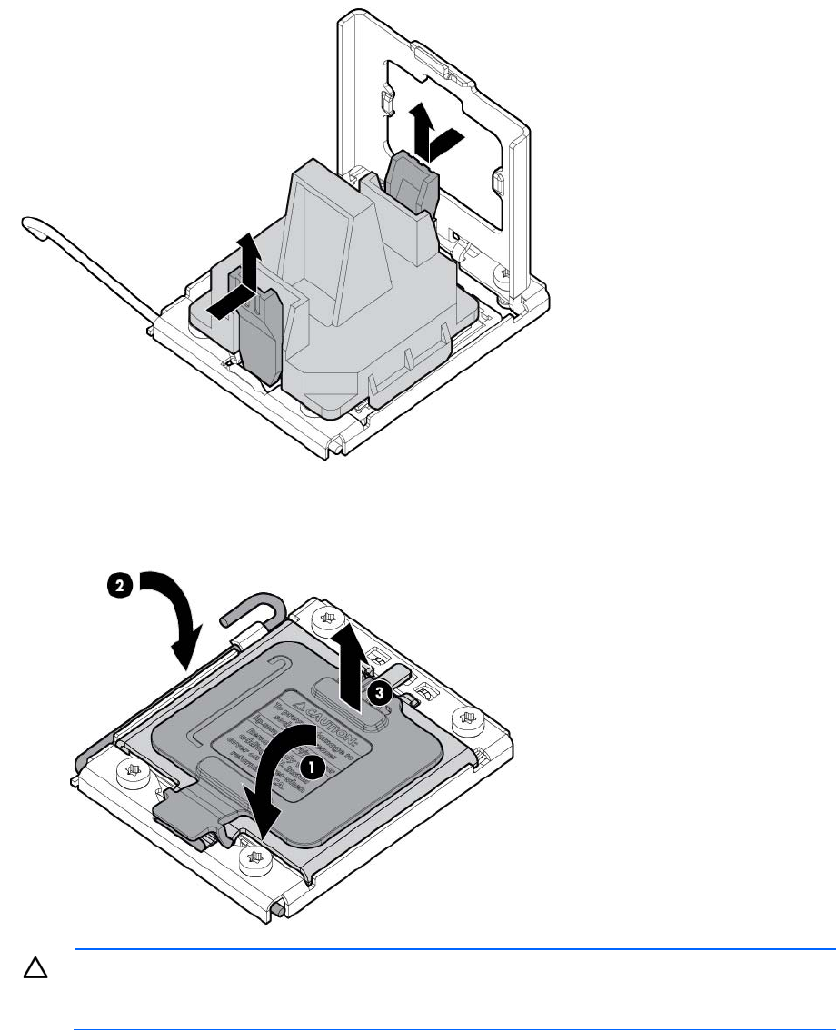 13. Close the processor socket retaining bracket and the processor locking lever. The processor socket