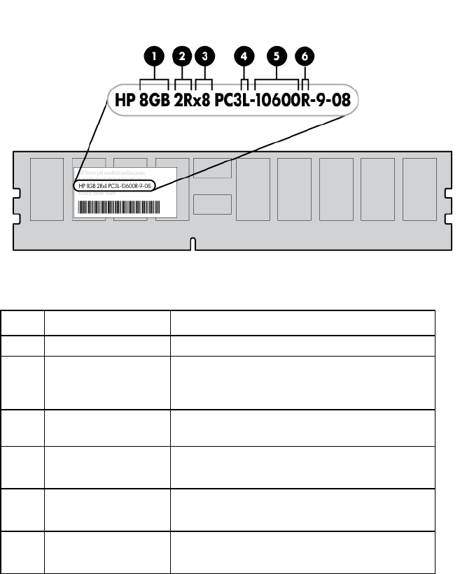 To determine DIMM characteristics, use the label attached to the DIMM and the following illustration and