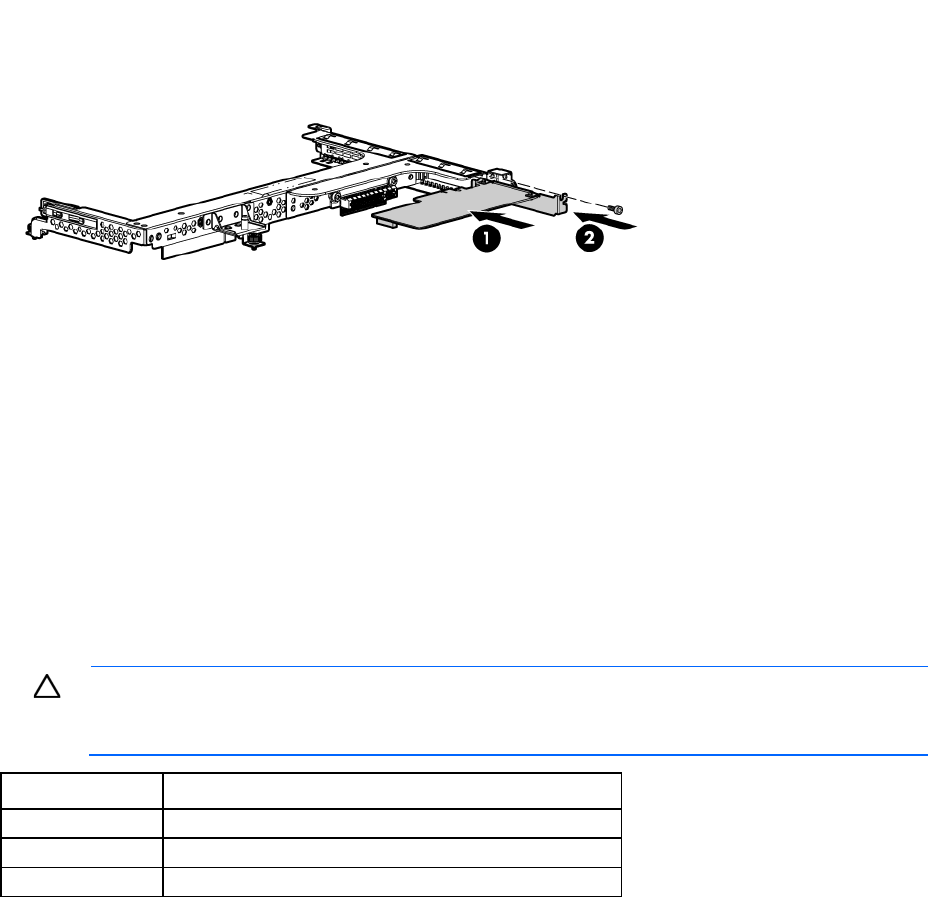 6. Install the adapter in slot 1 on the PCI riser board assembly.