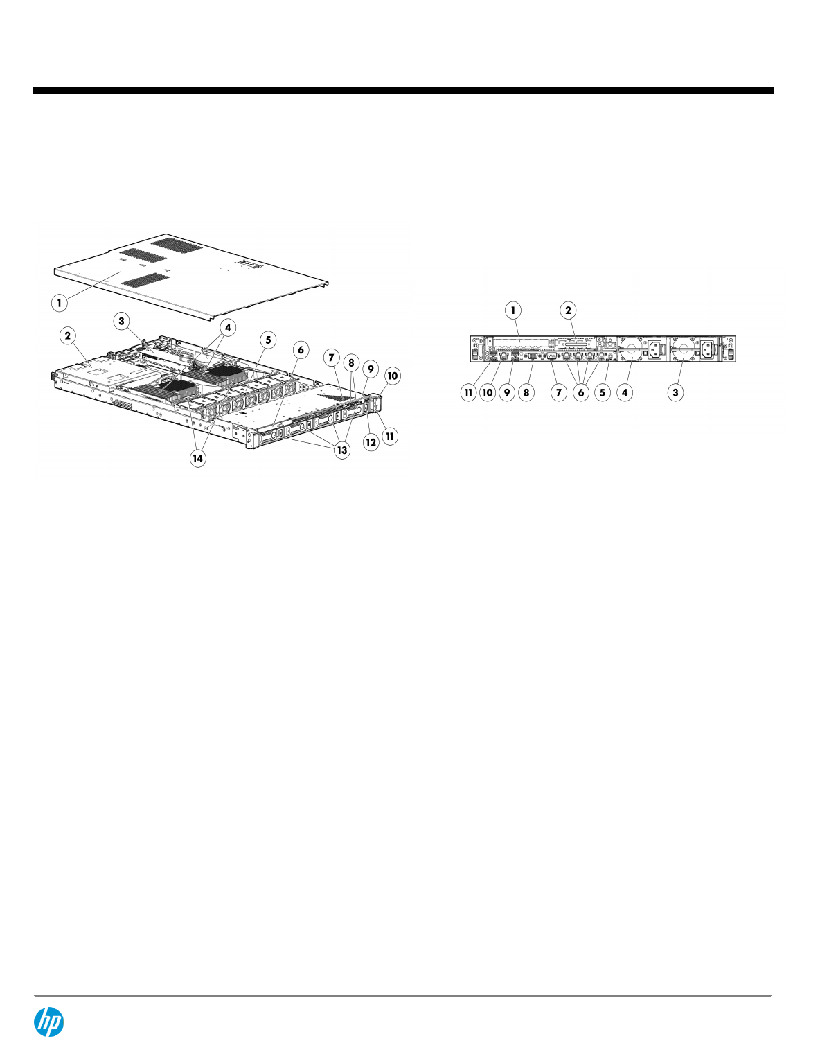 QuickSpecs HP ProLiant DL360e Generation 8 (Gen8) Overview Essential features packed in a 1U footprint to deliver the key elements for file and print and single application workloads. Value, performance, flexible storage, enhanced management and superior serviceability makes the DL360e the 2P system right-sized for both SMB and enterprise customers. Front View: 1. Access Panel 2. 3. 4. 5. 6. 7. 8. 9. 10. 11. 12. 13. 14.