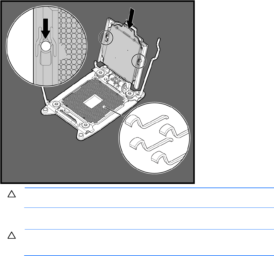 damage to the processor socket and the system board. Press only in the area indicated on the