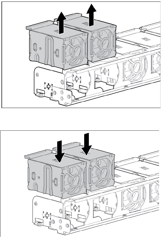 Install fans 1 and 2 only when processor 2 is installed. When only one processor is installed, install the fan