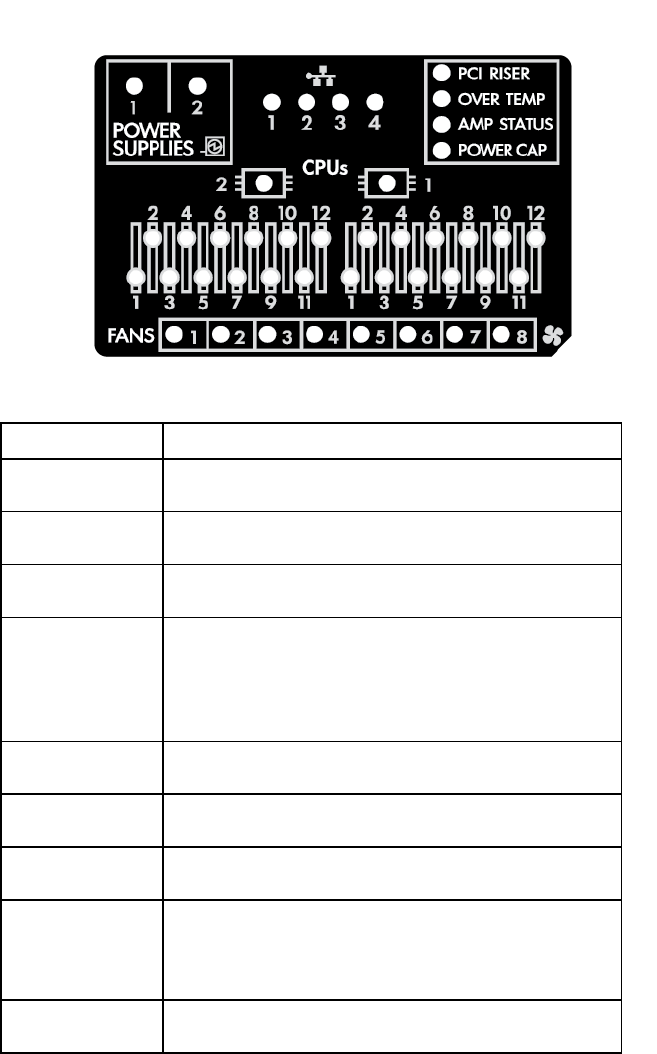The HP Systems Insight Display LEDs represent the system board layout. The display provides status for all