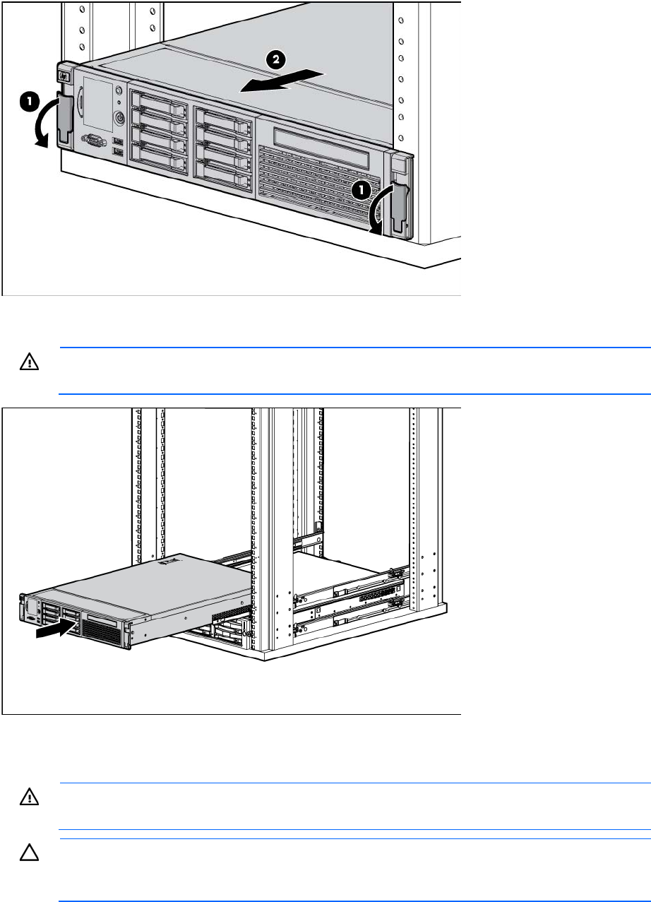 latches and sliding the server into the rack. The sliding rails could pinch your fingers.