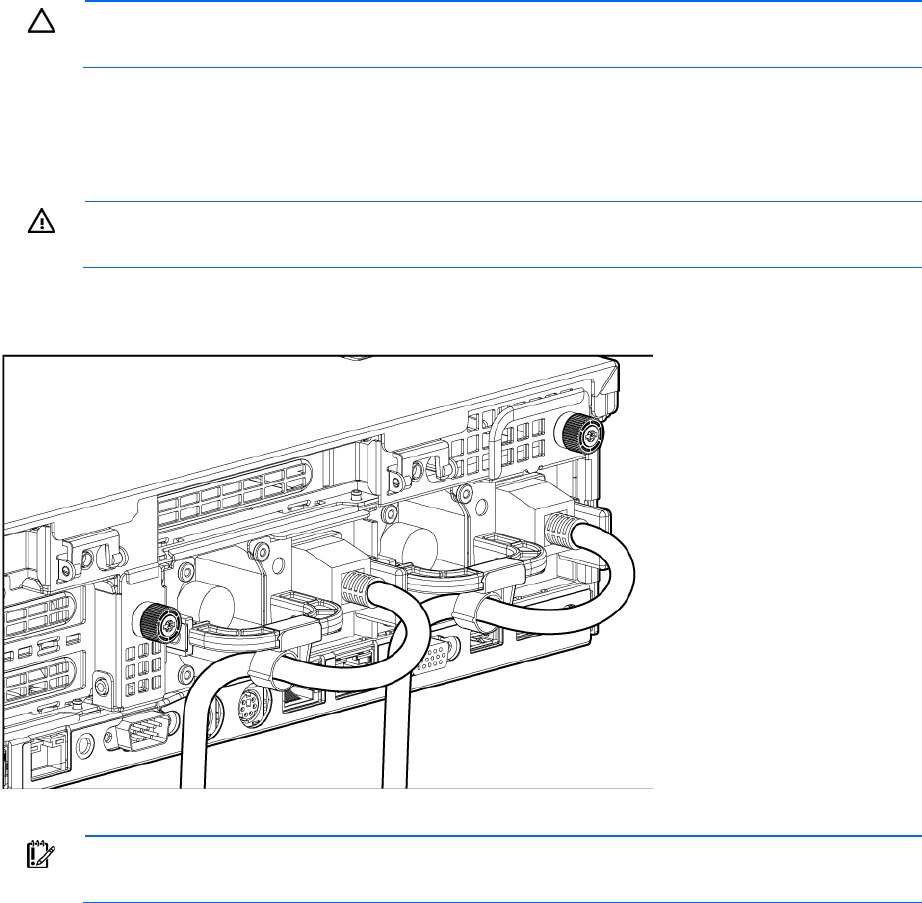 1. Install the server and cable management arm into the rack. For more information, see the installation