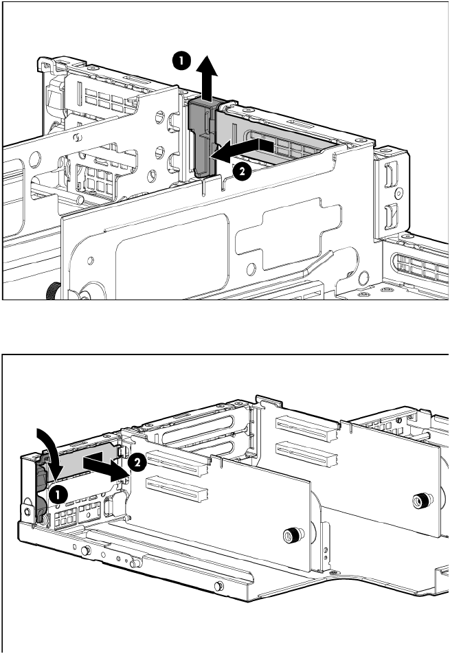 o To remove slot covers 5 and 6, push down on the latch, rotate the latch down, and then remove the