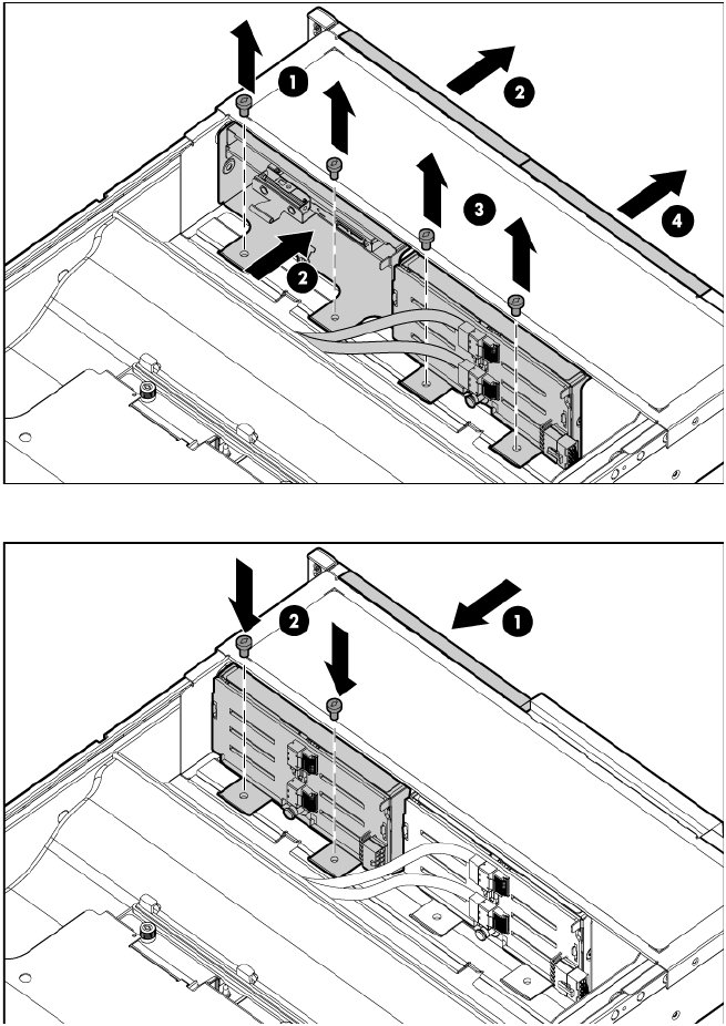 Remove the two primary hard drive retaining screws and slide the cage forward.