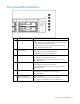 SCSI backplane components Item Description 1 Power button/LED connector 2 SCSI connector (port 2) 3 DVD/CD-ROM drive connector 4 SCSI connector (port 1) 5 Diskette drive connector 6 Power connector 7 USB connector 8 Diskette drive system connector 9 SCSI connector (used with a jumper cable in simplex mode or terminator board in duplex mode) 10 DVD/CD-ROM drive system connector Server component identification 15