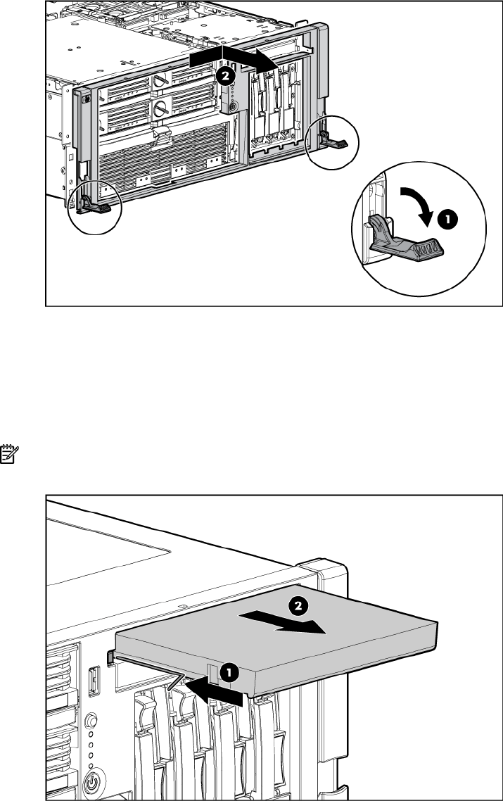 To remove the DVD drive, optional diskette drive, or optional CD-RW drive: