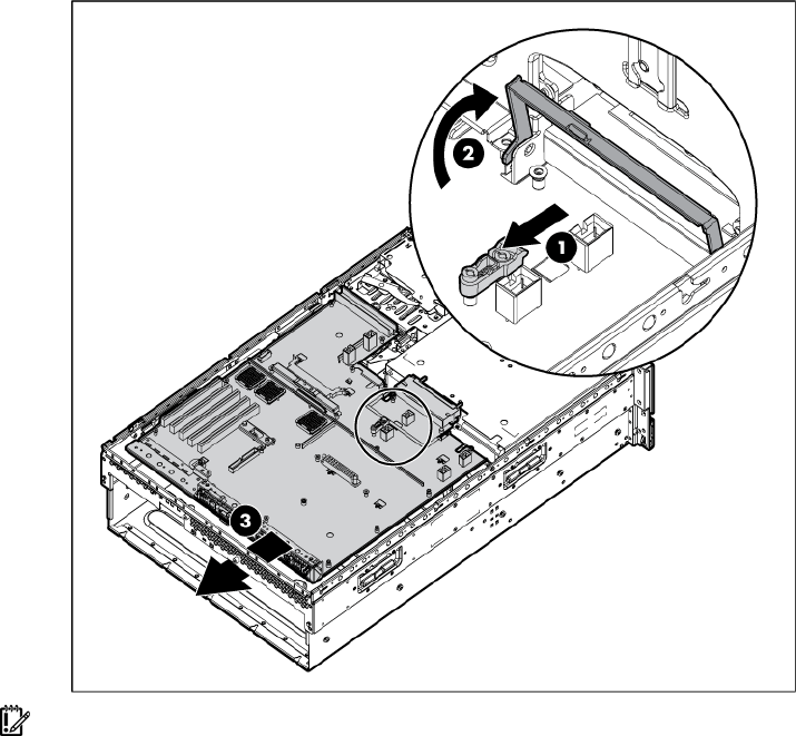Using the lever, lift the system board slightly, and slide the system board out through the back of the