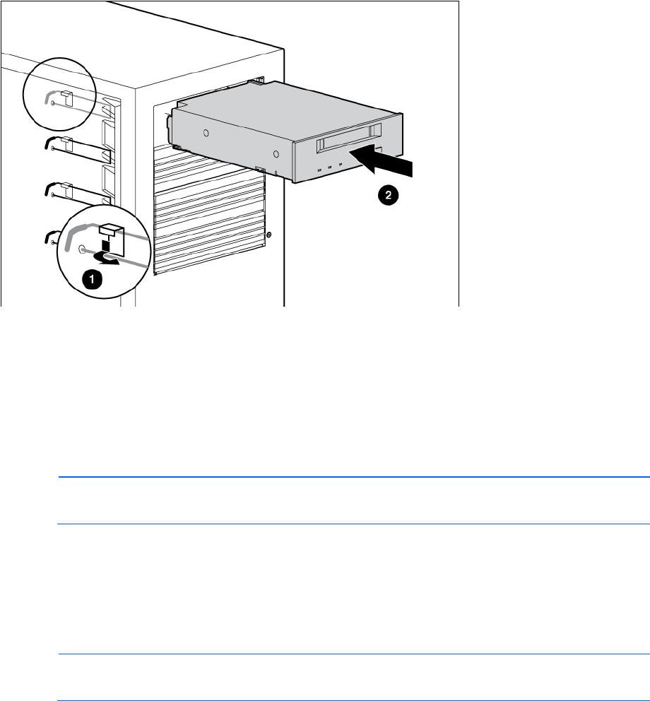Release the media bay retainers and slide the half-height media device part of the way into the bay.