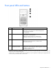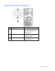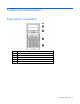 Component identification Front panel components Item Description 1 Optical drive (optional) 2 Media drive bay 3 Power On/Standby button and system power LED 4 USB connectors 5 Drive bays (inside) Component identification 6
