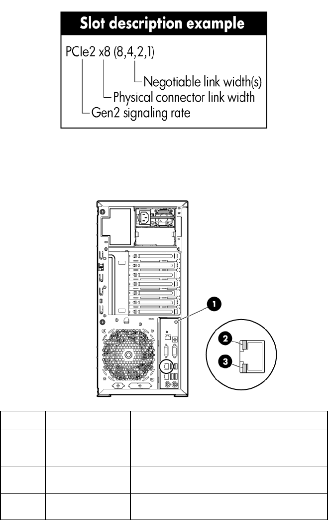 NIC/iLO 2 activity Green or flashing green = Activity exists.